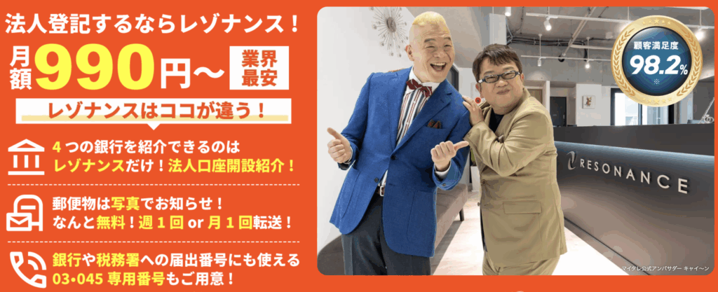 レゾナンス990円〜港区・新宿区など一等地登記、郵便転送、会議室レンタル