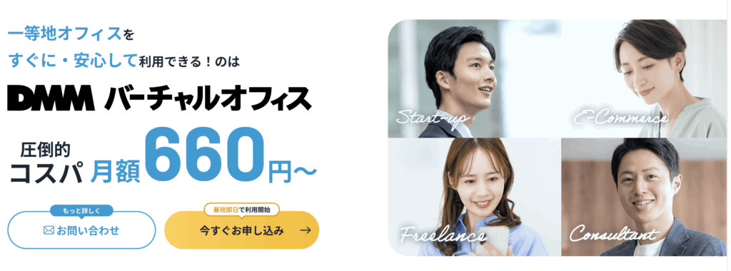 DMMバーチャルオフィス990円〜渋谷・銀座など主要エリア登記、郵便転送、専用アプリ管理